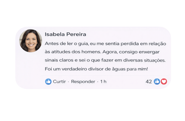 ✅ Passe a enxergar comportamentos masculinos com mais clareza, entendendo sinais que antes pareciam confusos.